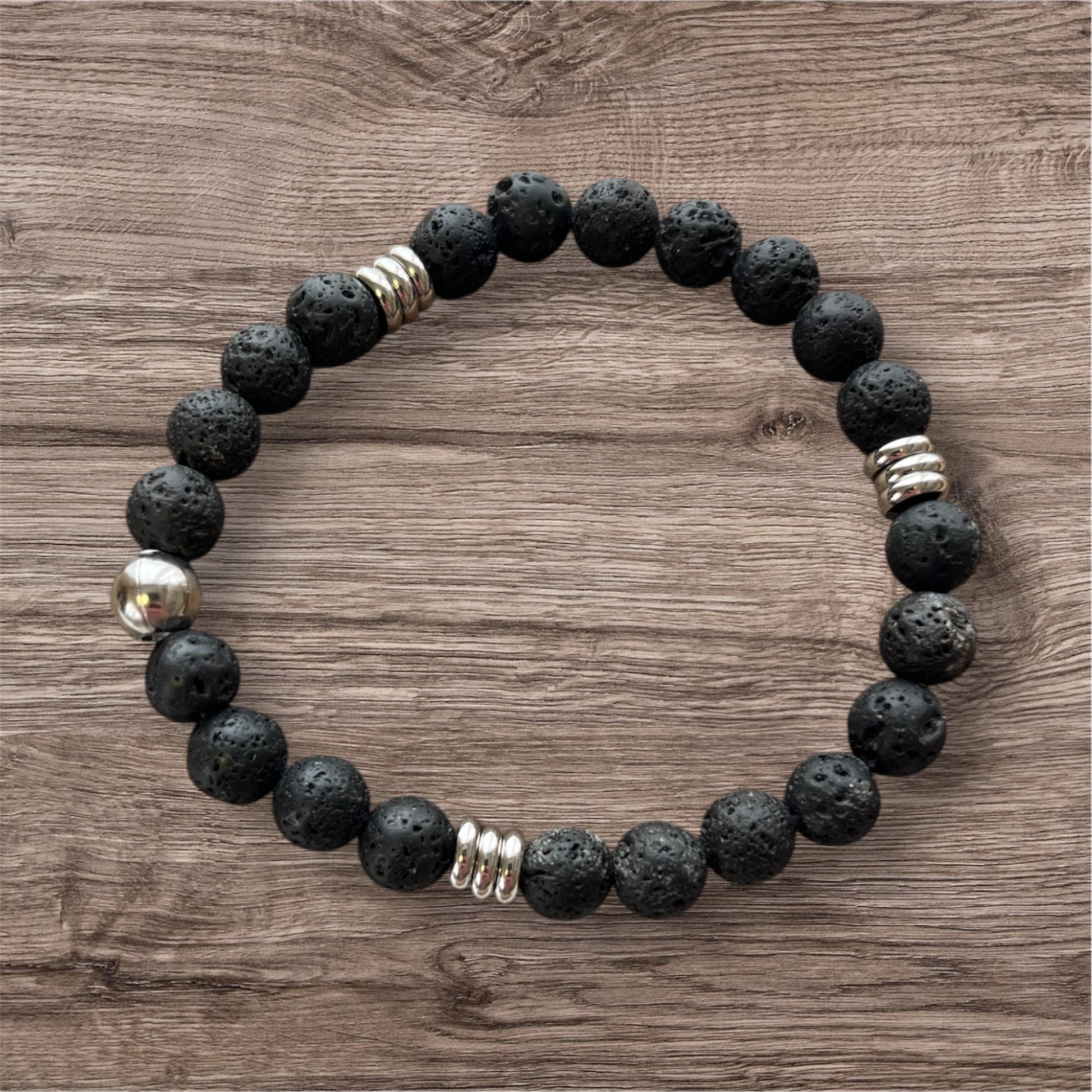 Elevate your style with this rugged yet refined men's beaded bracelet. Handcrafted in Canada from natural gemstones and accented with durable stainless steel details, this 8.5" bracelet combines earthy elegance with masculine appeal.